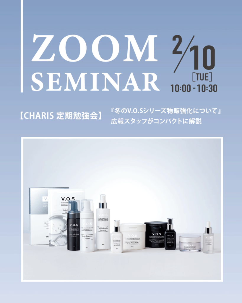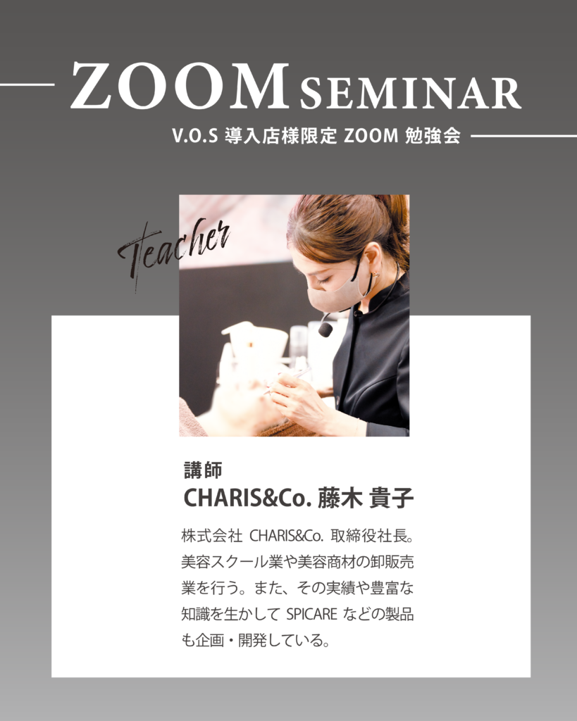 V.O.Sシリーズの開発に深く携わる藤木貴子による、V.O.S導入店様限定のZOOM勉強会を開催いたします