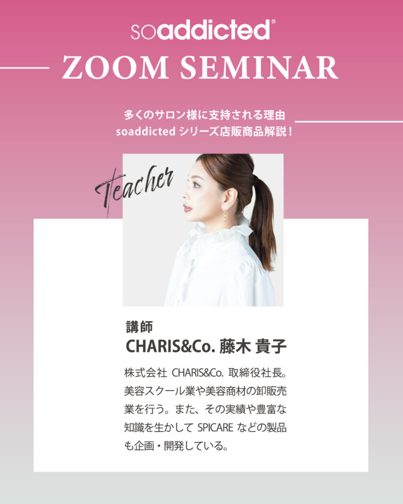 今回のセミナーでは、soaddictedシリーズが多くのサロン様から支持される理由を、藤木貴子が徹底解説いたします